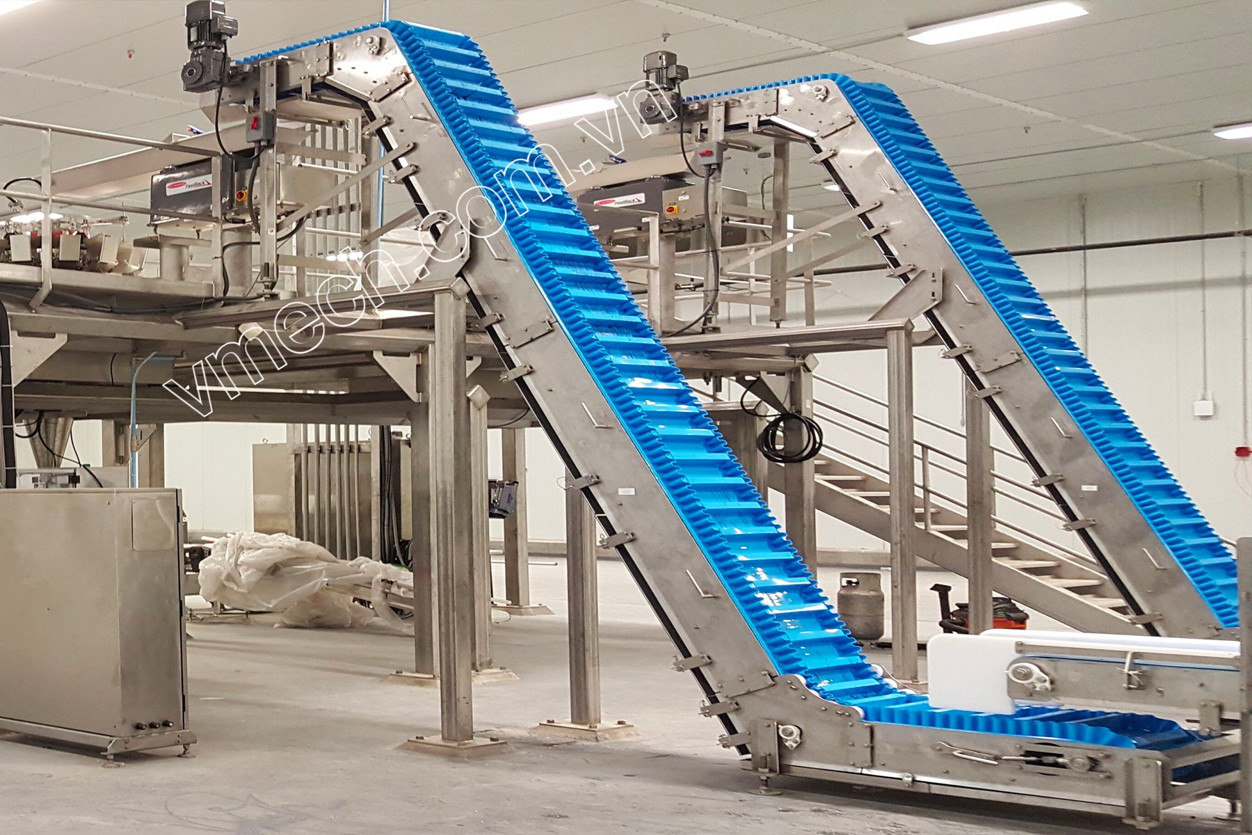 Hệ thống băng tải trong dây chuyền chế biến thủy sản, thực phẩm.