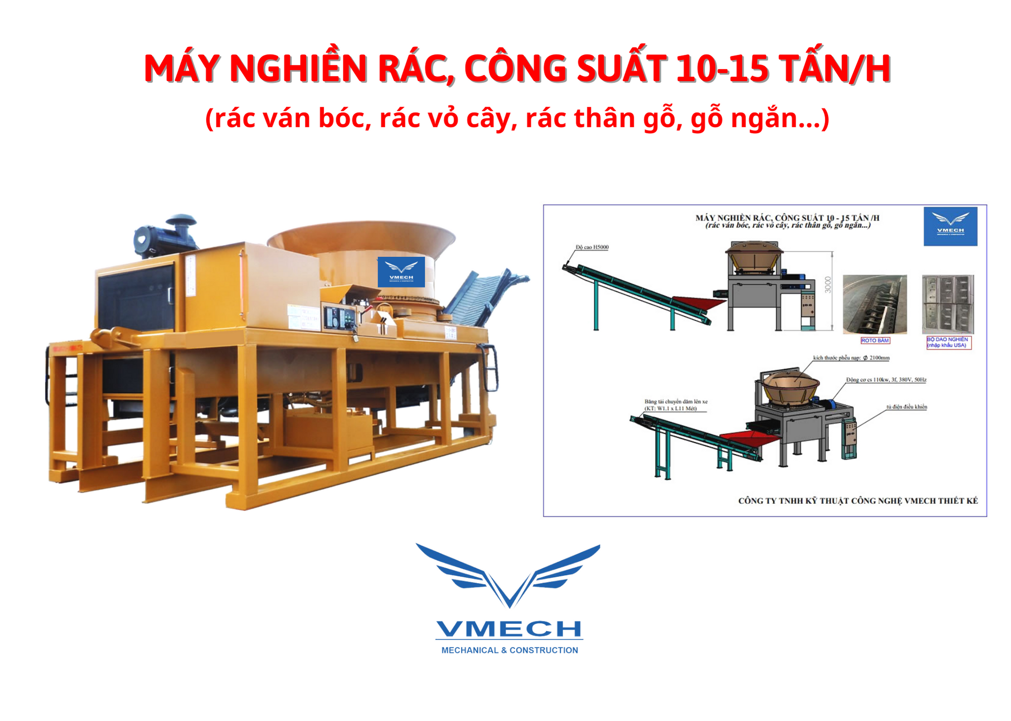 Hiểu được nhu cầu thực tiễn của thị trường, Vmech đã nghiên cứu chế tạo và phân phối ra sản phẩm MÁY NGHIỀN RÁC VMECH(rác ván bóc, vỏ cây, rác thân gỗ, gỗ ngắn,…) với tính năng chuyên dụng băm các loại rác ván bóc, vỏ cây,... thành dạng nhỏ với năng suất làm việc vượt trội lên đến 15 tấn/giờ phục vụ đa dạng nhu cầu của thị trường.