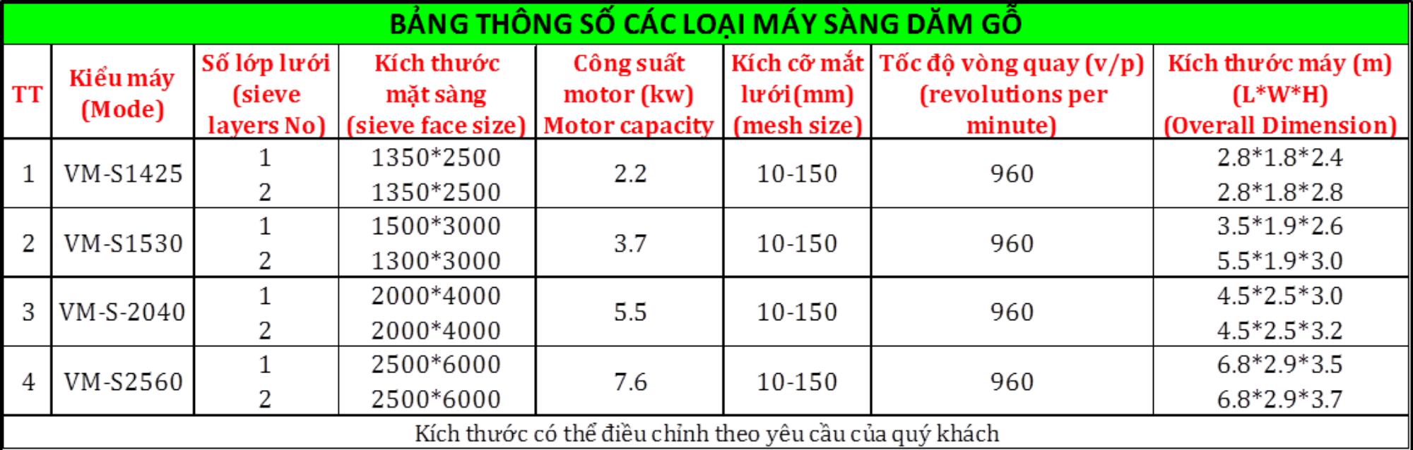 Vmech chuyên thiết kế, chế tạo nhiều mẫu máy sàng phục vụ cho ngành sản xuất dăm gỗ xuất khẩu, sản xuất dăm gỗ để đốt lò hơi.